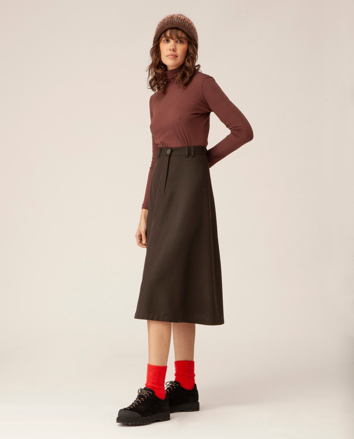 Long sleeve fitted t-shirt with soft turtle neck.